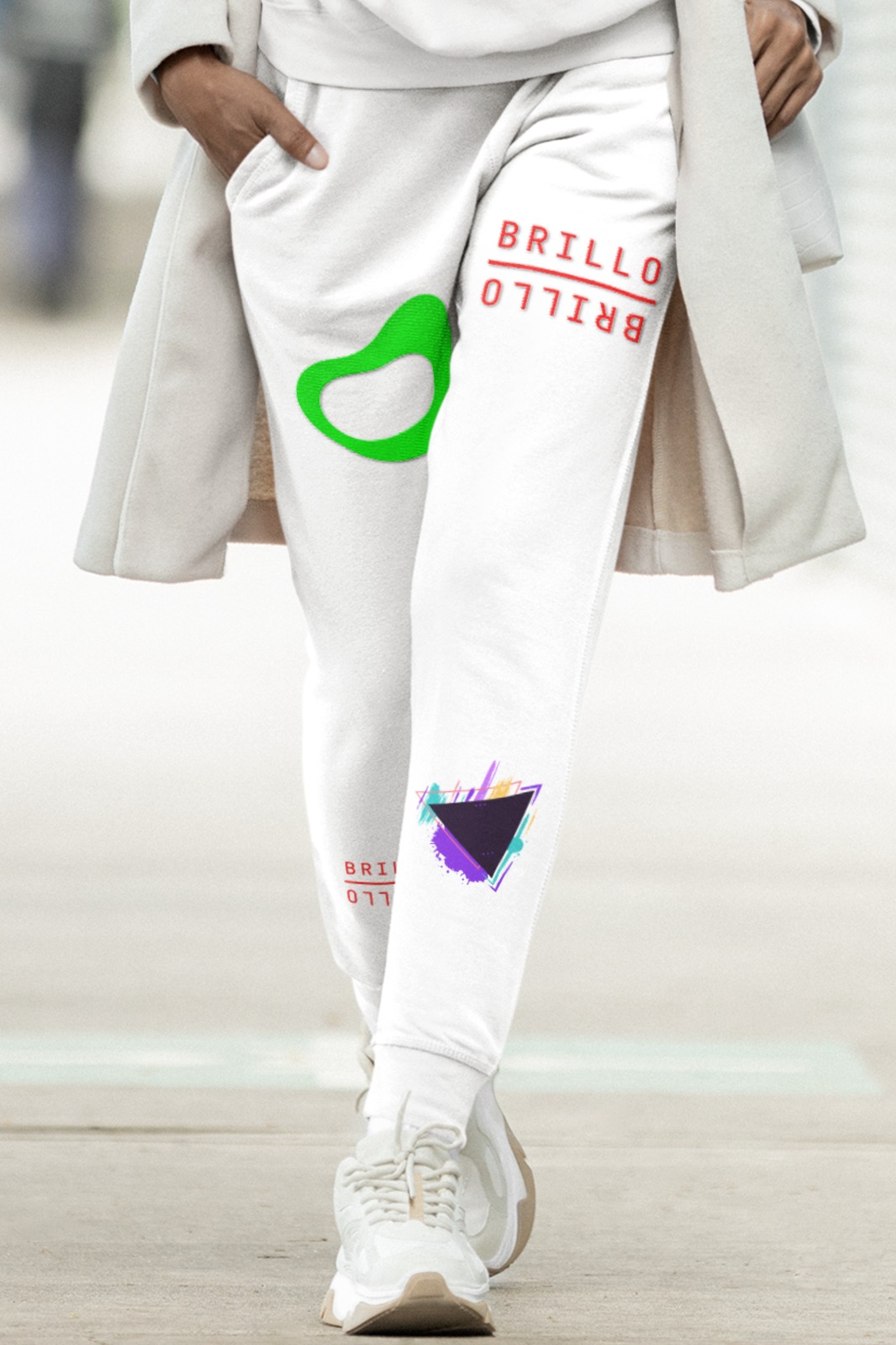 These white sweatpants break all the rules — and that’s exactly the point. With bold graphic accents in neon green, purple, and red, they bring a modern street-art vibe to classic comfort. Whether you’re walking the city or lounging in creative flow, these joggers are your canvas.