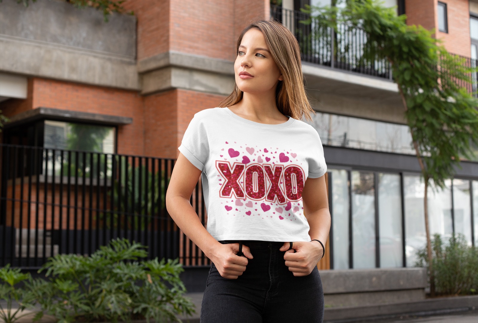 💖 Bold “XOXO” graphic surrounded by playful heart details
